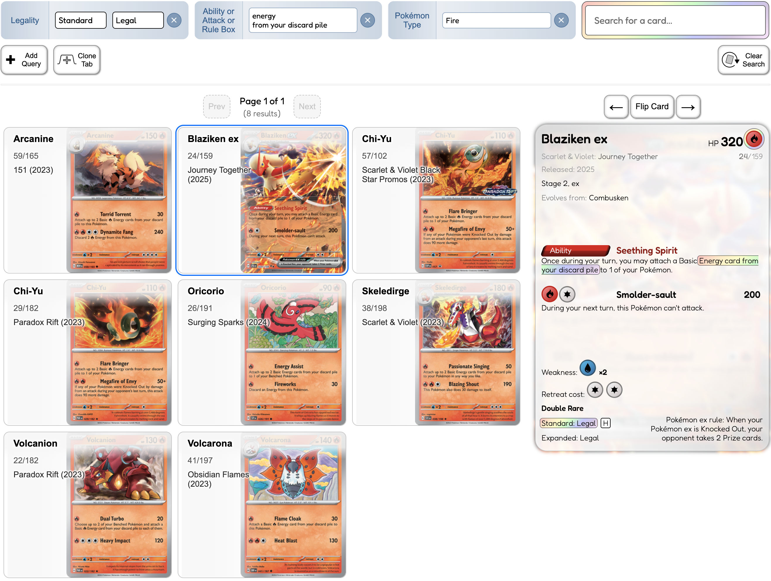 This is a search engine for Pokémon TCG cards. It offers a powerful yet simple search interface that lets you find cards by any detail — including advanced text matching inside abilities, attacks, and rule boxes.